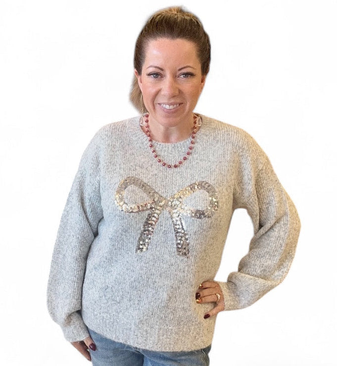 Get in the holiday spirit with our festive Ribbon Sequin Christmas Holiday Pullover. With its playful loose fit and dazzling ribbon sequins, you'll be the life of the party. Spread some cheer and shine bright this season!