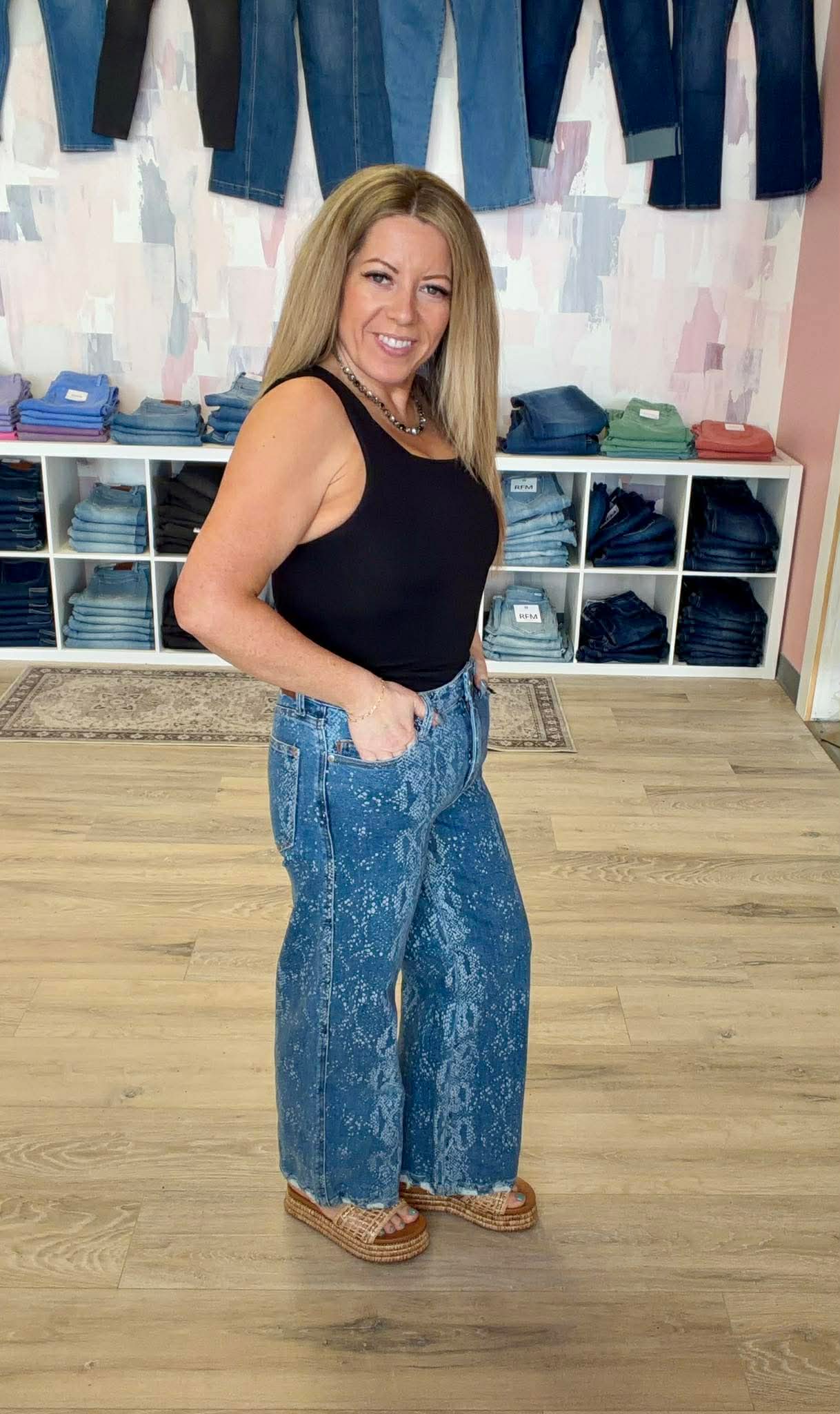 Get ready to go wide or go home with the Judy Blue Wild Whisper Denim! These wide-leg wonders aren’t just denim; they’re your new BFFs for comfy days and wild adventures (just don’t wear them on a first date—too much competition!). The lines add a dash of sass, making your legs look longer than your to-do list. You’ll be strutting like you own the runway, or at least the coffee shop!