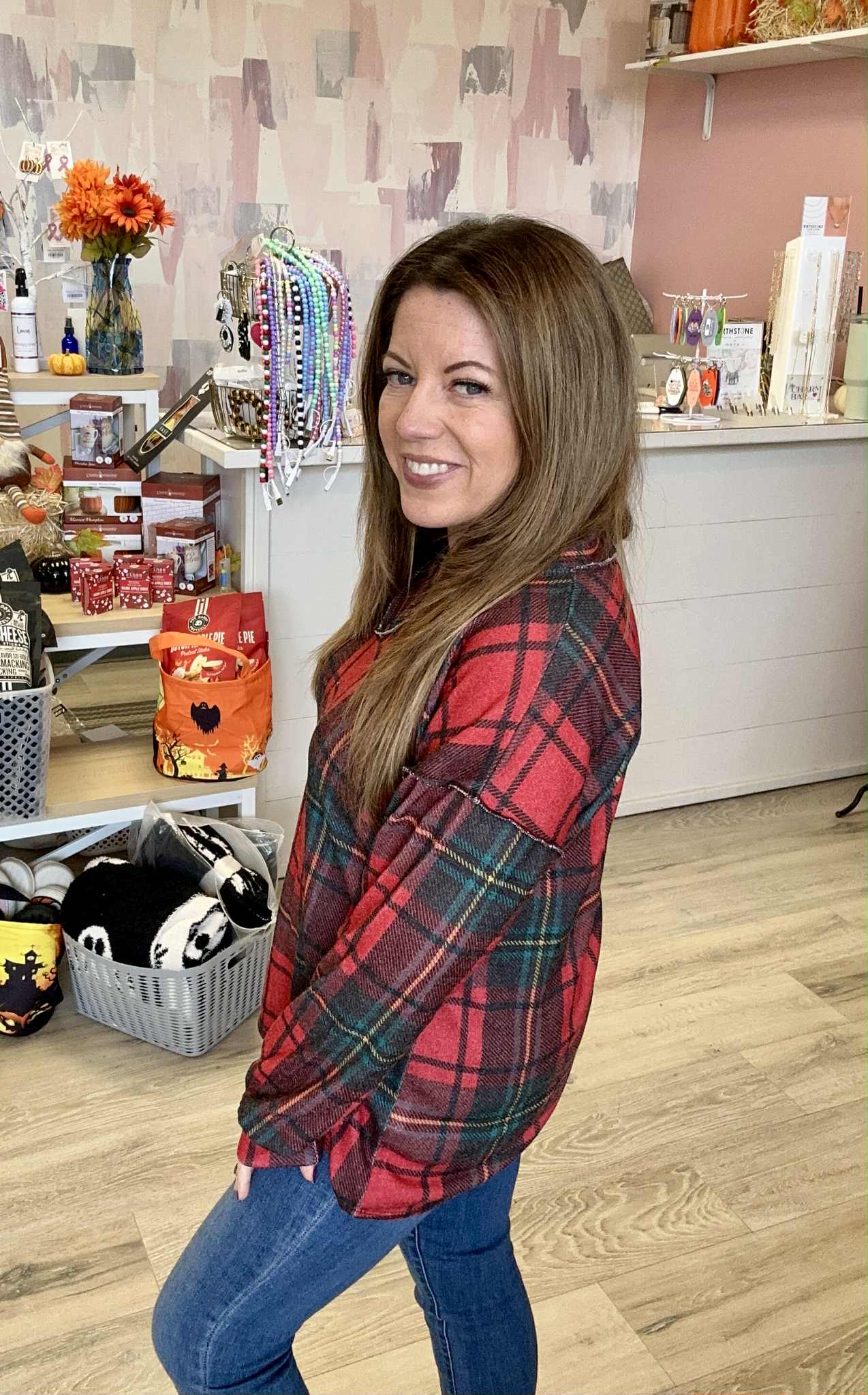 Add classic style to your wardrobe with the Plaid Long Sleeve Top, featuring a timeless red and green plaid pattern perfect for seasonal and everyday wear. Crafted from soft, breathable fabric, this top offers cozy comfort while keeping your look polished and stylish. Ideal for pairing with jeans, leggings, or skirts, it’s versatile enough for casual outings, workdays, or festive occasions.