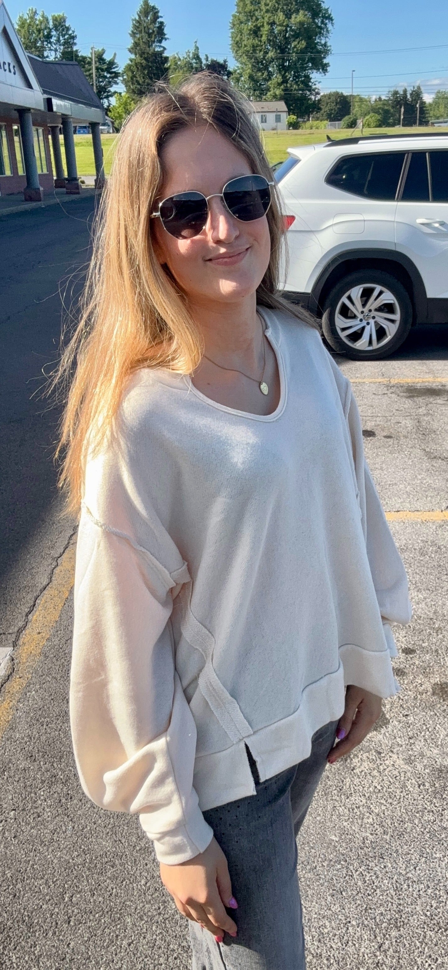Keep it casual and cozy with this Raw Edge Split Neck Pullover the perfect everyday essential with a laid-back edge. Featuring a soft, relaxed fit and raw edge detailing, this pullover adds a touch of effortless style to your off-duty look. The split neckline gives it a slightly sporty feel, while the lightweight fabric makes it ideal for layering across seasons. Pair it with leggings, jeans, or joggers for an easy, go-anywhere outfit that still feels put together.