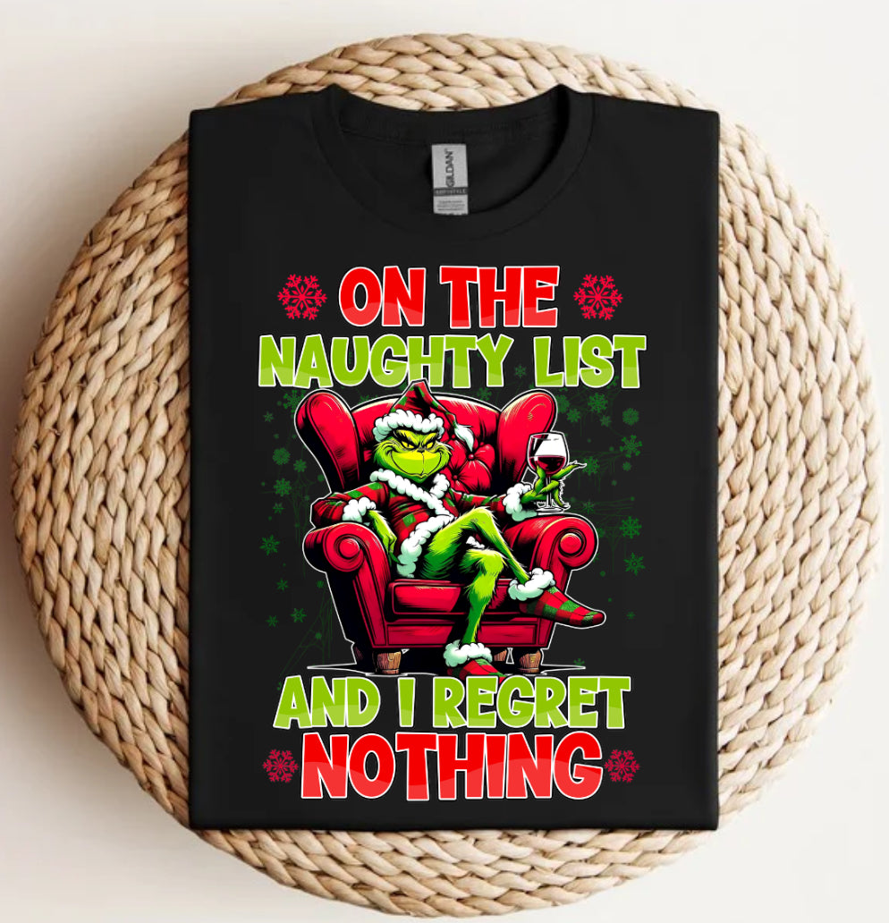 Show off your rebellious side with the I Regret Nothing Tshirt. With a design featuring the "naughty list" and the phrase "I regret nothing," you'll be sure to stand out (and potentially get into a little bit of trouble!). Embrace your mischievous nature with this playful and edgy shirt.