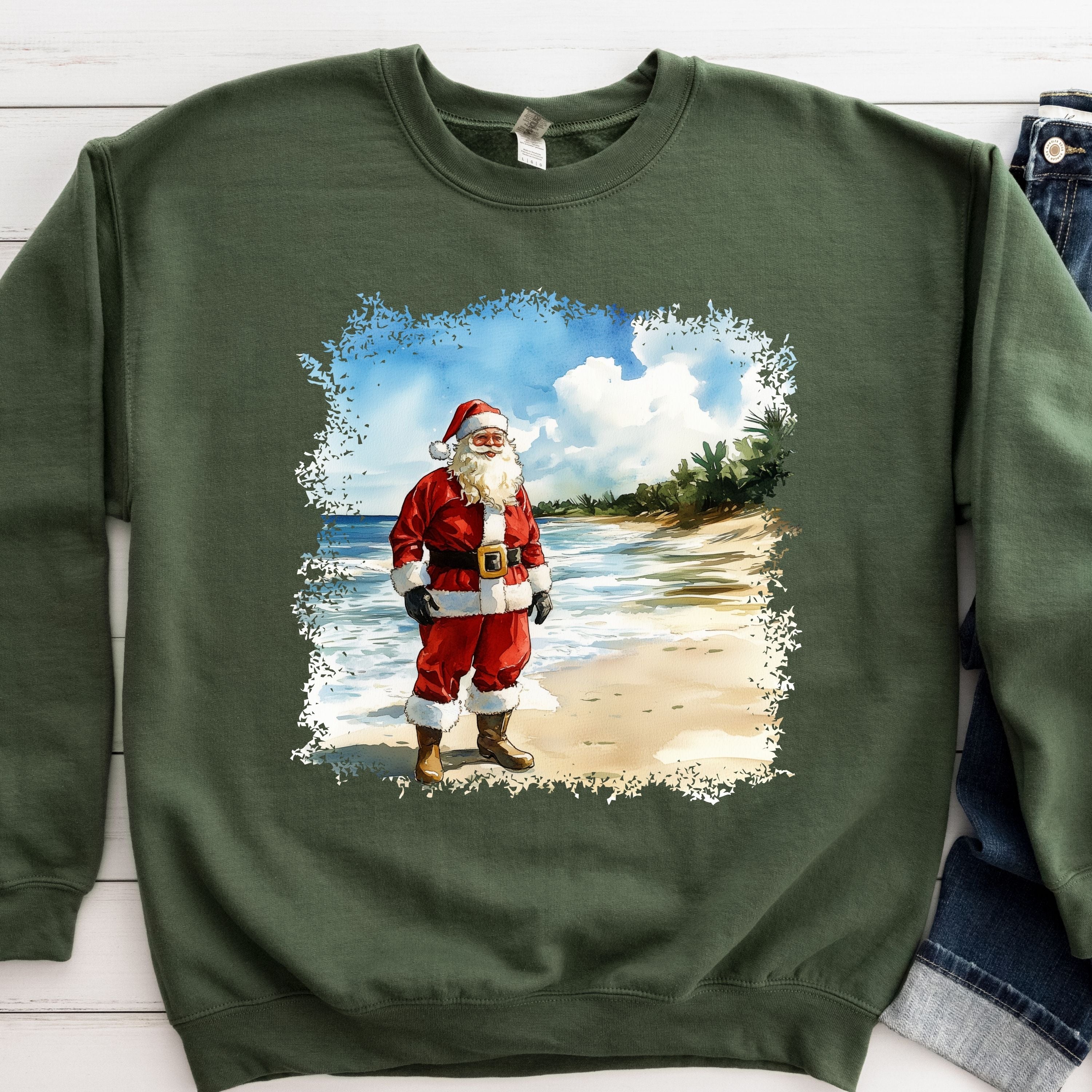 Santa on Beach Crew Sweatshirt