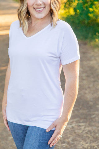 IN STOCK Chloe Cozy Tee - White | Women's V-Neck Top FINAL SALE