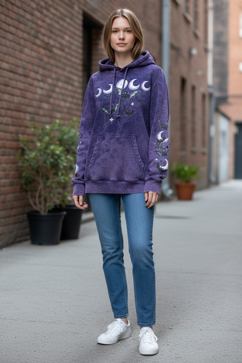 Get our custom mineral wash purple hoodie with any print you decide! Add you print in the order notes.