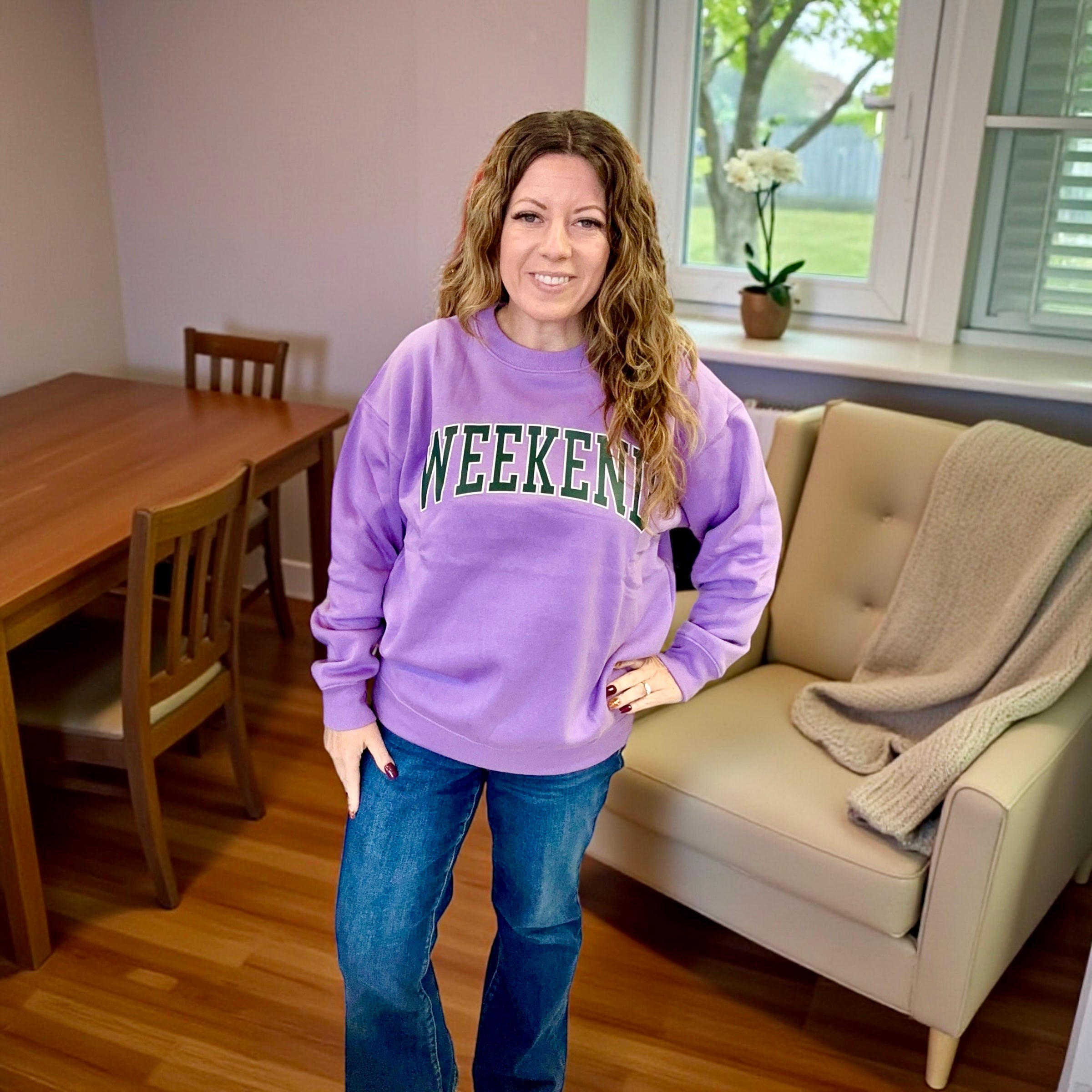 The Lavender Weekend Printed Fleece Sweatshirt is the perfect way to stay cozy and stylish on your days off! Featuring a round neck and a playful print, this sweatshirt is sure to add a touch of fun to your wardrobe. Embrace your playful side with this quirky sweatshirt.