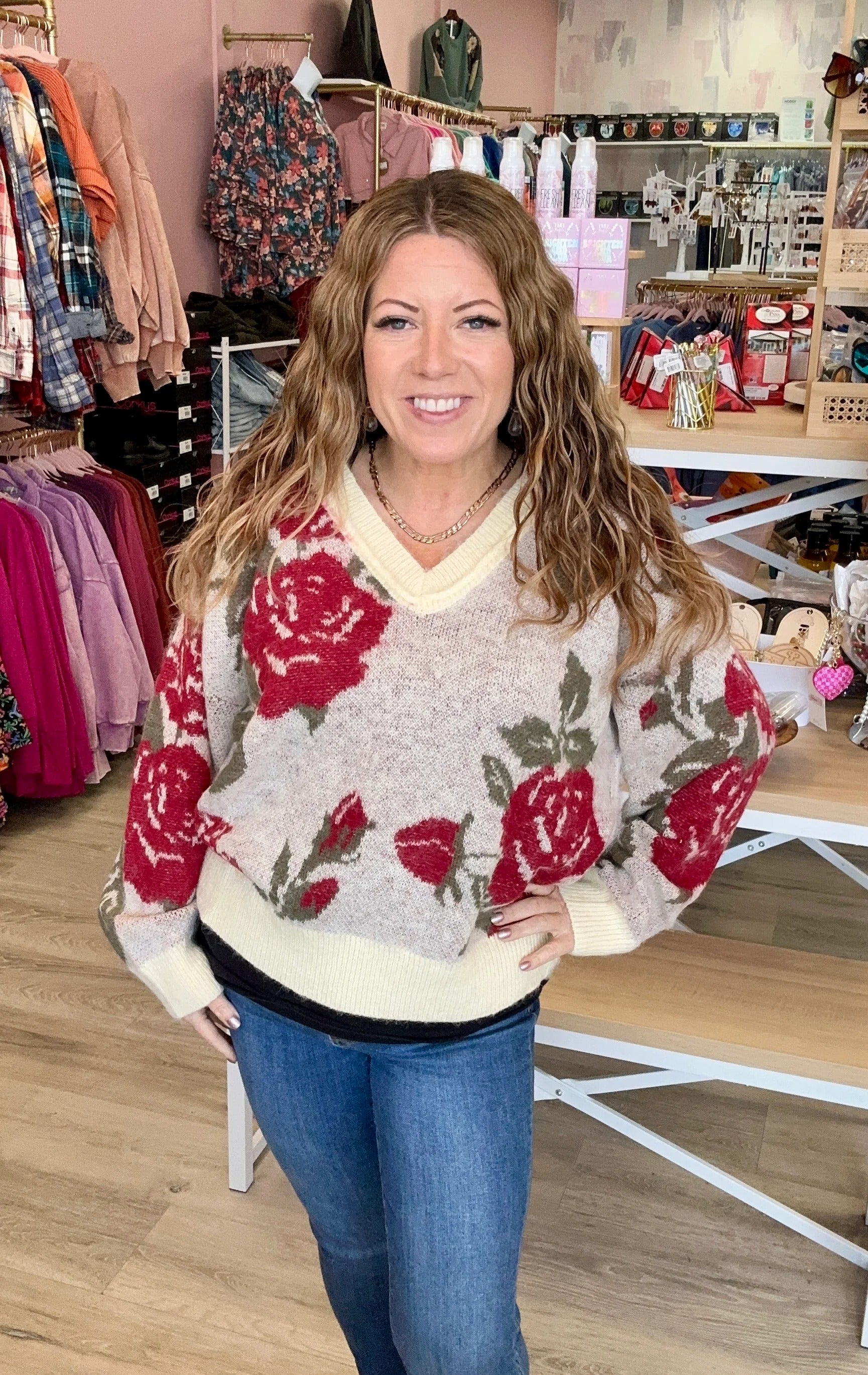 Rose Trimmed Sweater Romantic Details with Cozy Vibes