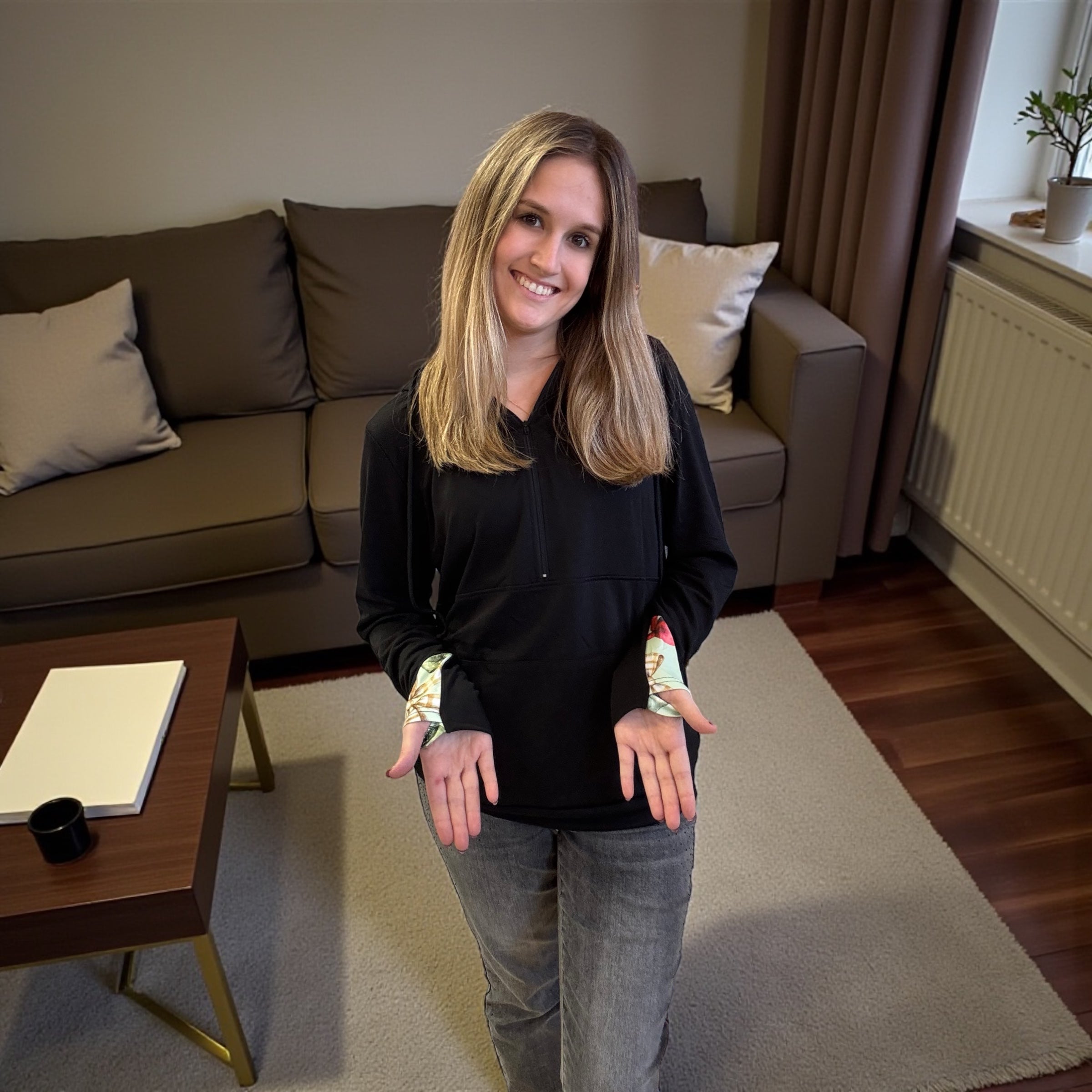 Shirley & Stone is about to knock your socks off with our buttery-soft, high-stretch hoodies. Designed with a flattering half-zip and comfy thumbholes, they’re made for all-day wear and serious lounging. Whether you’re out and about or cozy at home, this hoodie’s about to become your new favorite. Comfort just got an upgrade.