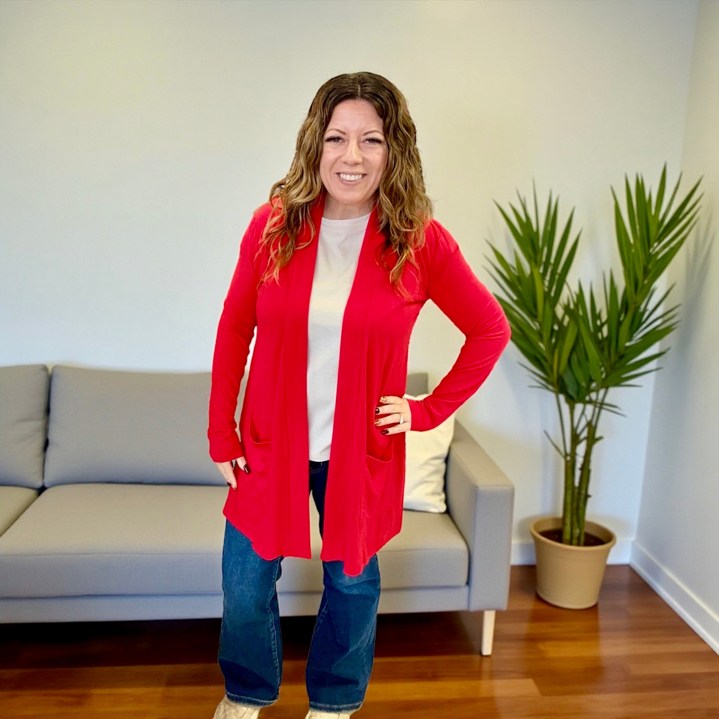 Get cozy in style with our Slouchy Open Pocket Cardigan! This quirky colored cardigan is perfect for adding a pop of color to your wardrobe. With its loose, relaxed fit and convenient open pockets, you'll be both comfortable and fashionable. Upgrade your look today!
