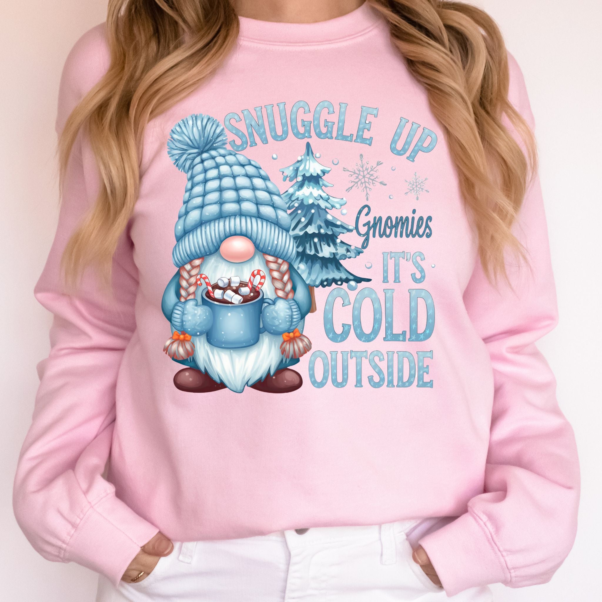 Get cozy with our Snuggle Up Gnomies Sweatshirt! Featuring a festive Christmas gnome graphic, this tshirt is perfect for snuggling up by the fireplace during the holidays. Made with soft material, you'll never want to take it off. Spread some holiday cheer with this quirky and playful sweatshirt.