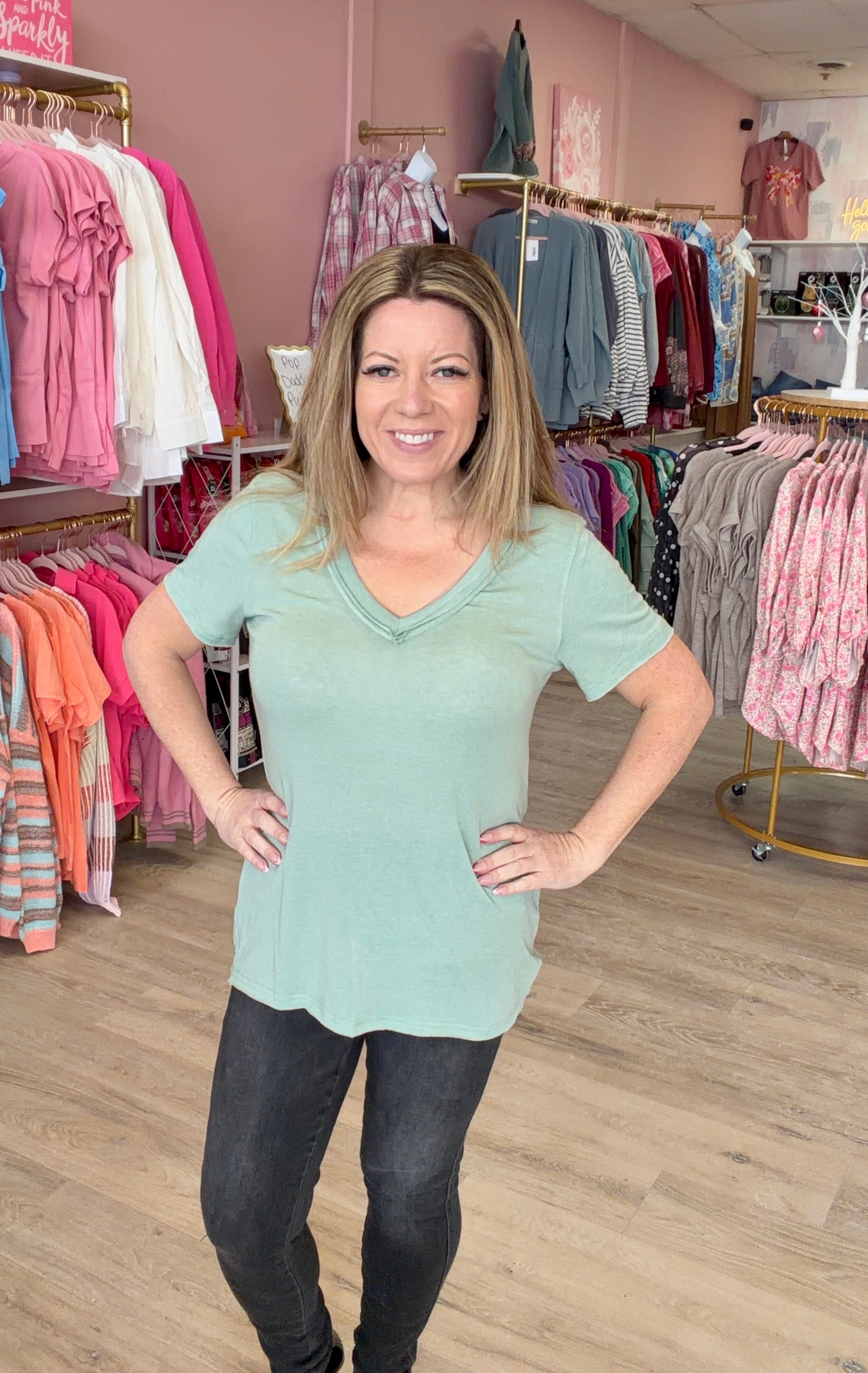 Slip into effortless cool with our Barely There Vintage V-Neck—a laid-back essential that's anything but basic. Crafted from POL's signature jersey fabric, this tee feels like a cloud against your skin with its ultra-soft texture and feather-light comfort. The relaxed regular fit and timeless V-neckline flatter every frame, while vintage stone washing adds that perfectly worn-in vibe. Short sleeves keep things breezy, making it your new go-to for everything from casual Fridays to weekend adventures. Simple, comfortable, and undeniably wearable.