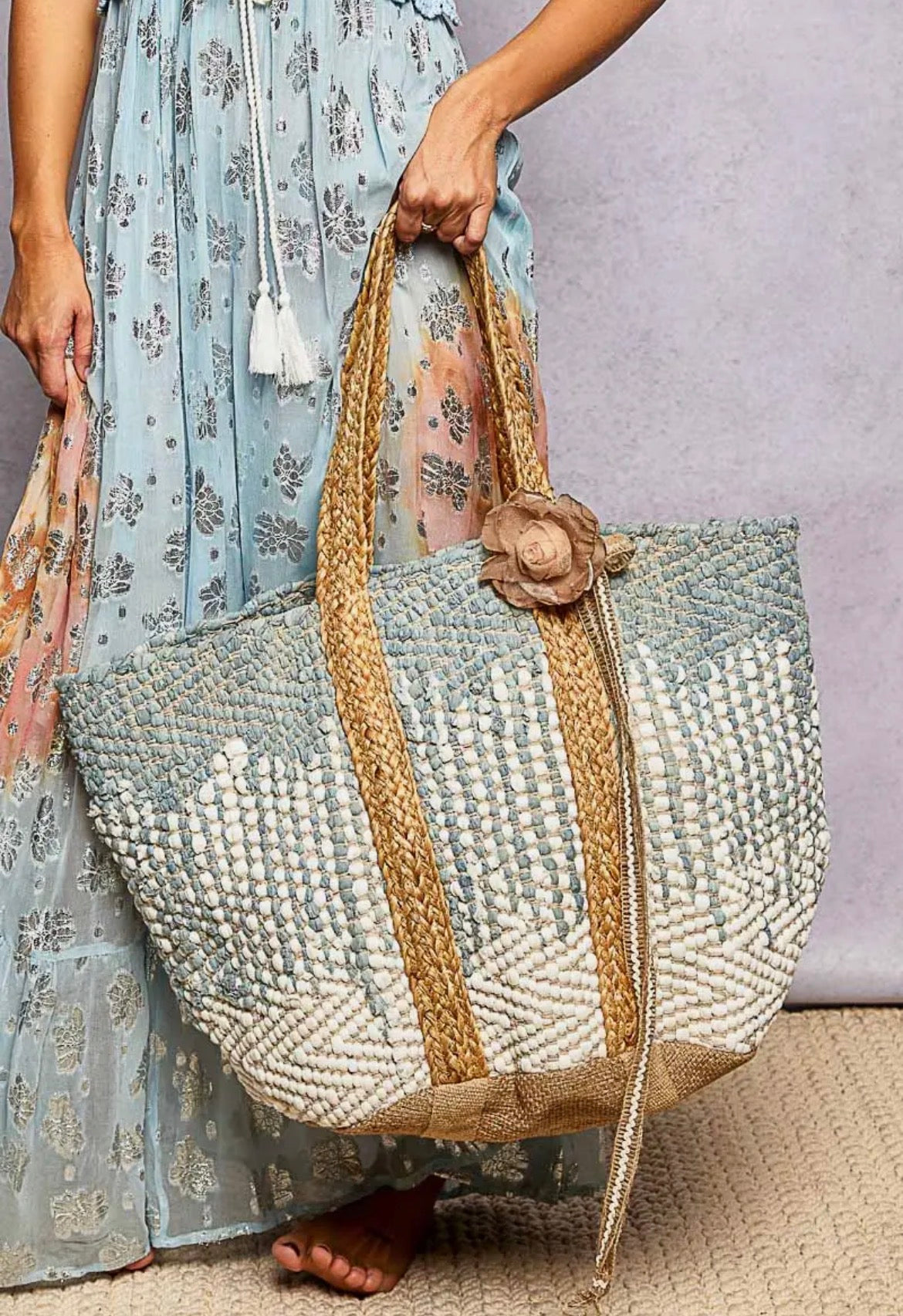 Say hello to your new best friend: the Bohemian Denim Tote! This stylish bag features a funky denim crochet weave—perfect for carrying your essentials or looking fabulous while dodging life's curveballs (like spilled coffee). It's like a picnic blanket for your stuff, but cooler! Perfect for your next adventure (or grocery run)!