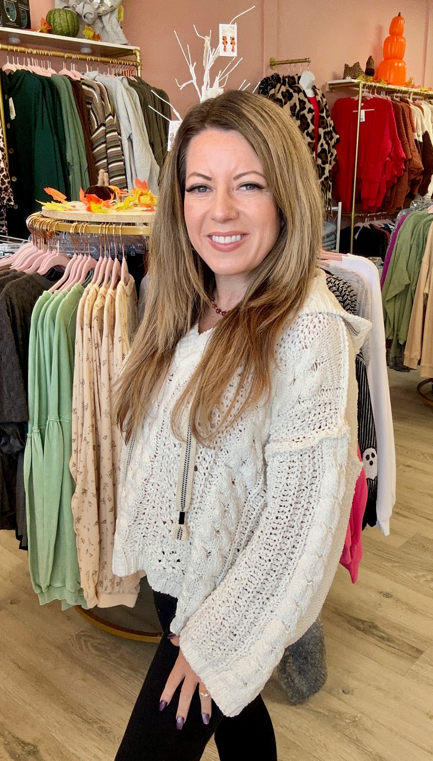 Snuggle season, unlocked! This oversized chenille sweater in soft cream features a classic cable knit design with a cozy hood for the ultimate laid-back look. The plush, velvety texture feels like a blanket you can wear, while the oversized fit keeps it effortlessly chic. Perfect for chilly nights, coffee runs, or lazy Sundaysâyouâll never want to take it off. âđïžâïž