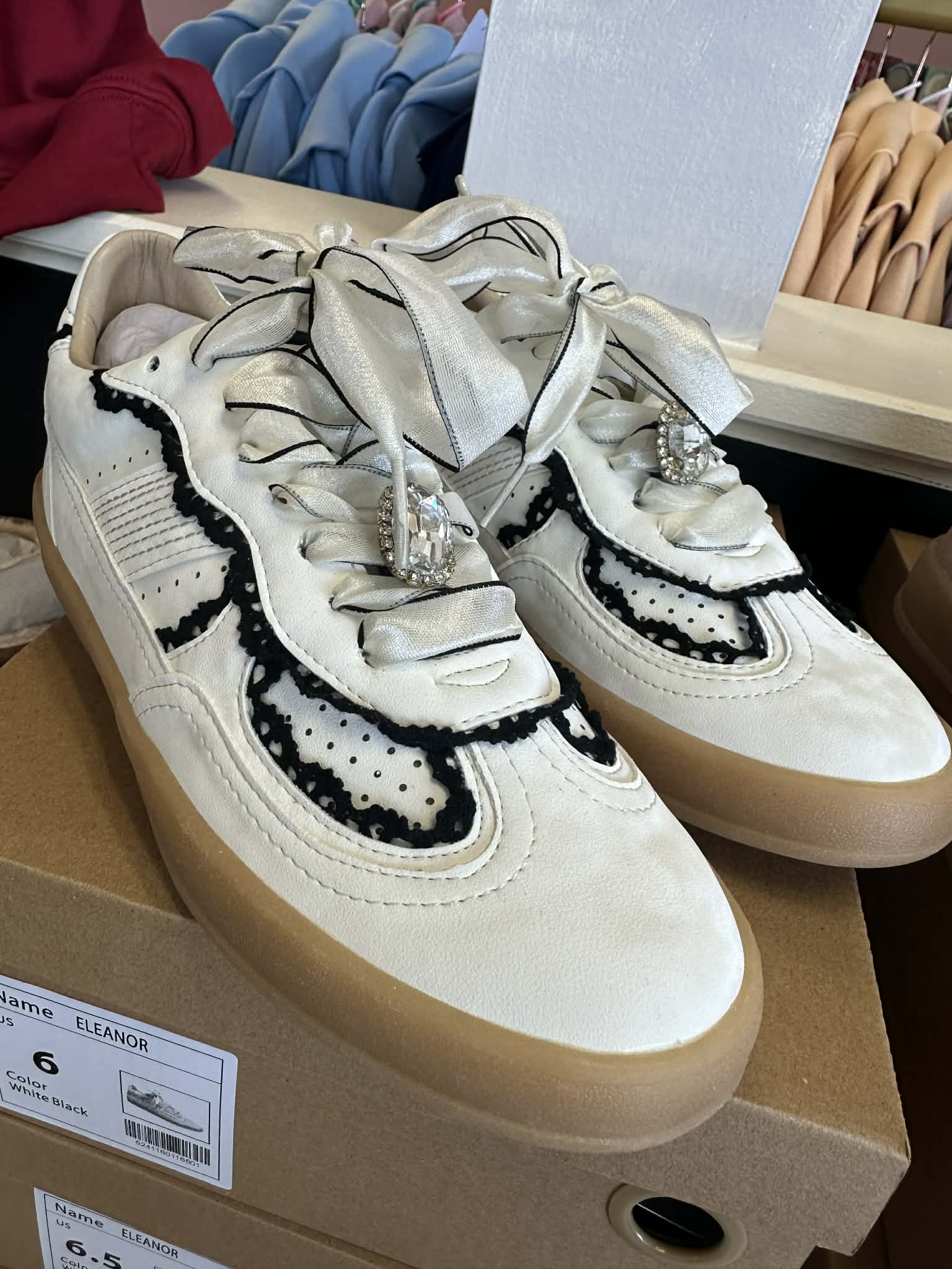 Step up your sneaker game with the Eleanor Lace Up Sneaker! Featuring a unique ribbon lace up design, these shoes add a touch of style to any outfit. Stay comfortable and fashion-forward all day long.