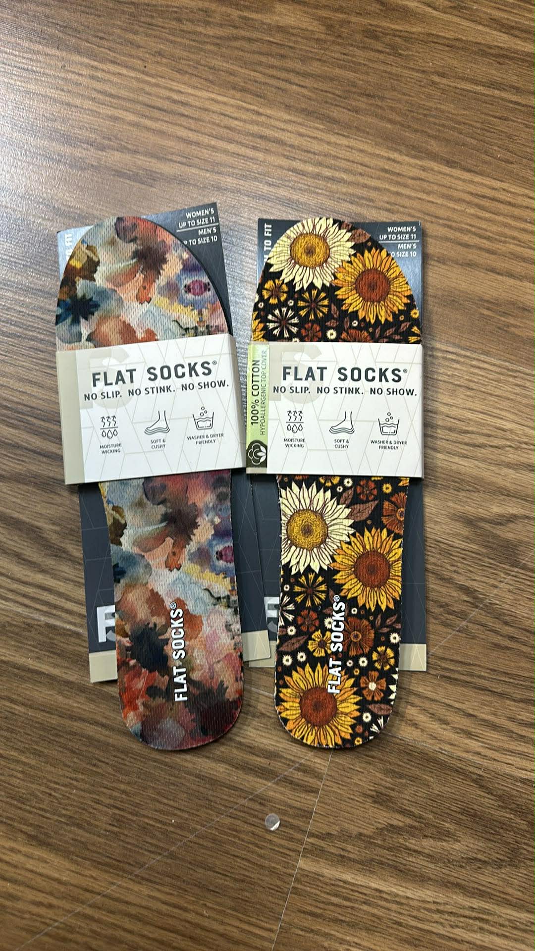 Flat Socks are the no-show socks that never slip, bunch, or stink! Designed to keep your shoes fresh and your feet comfy, these ultra-thin, cushioned inserts absorb sweat and odor—without the hassle of traditional socks. Just slip them in, wear them all day, and toss them in the wash when needed. Say goodbye to annoying socks and hello to effortless comfort!