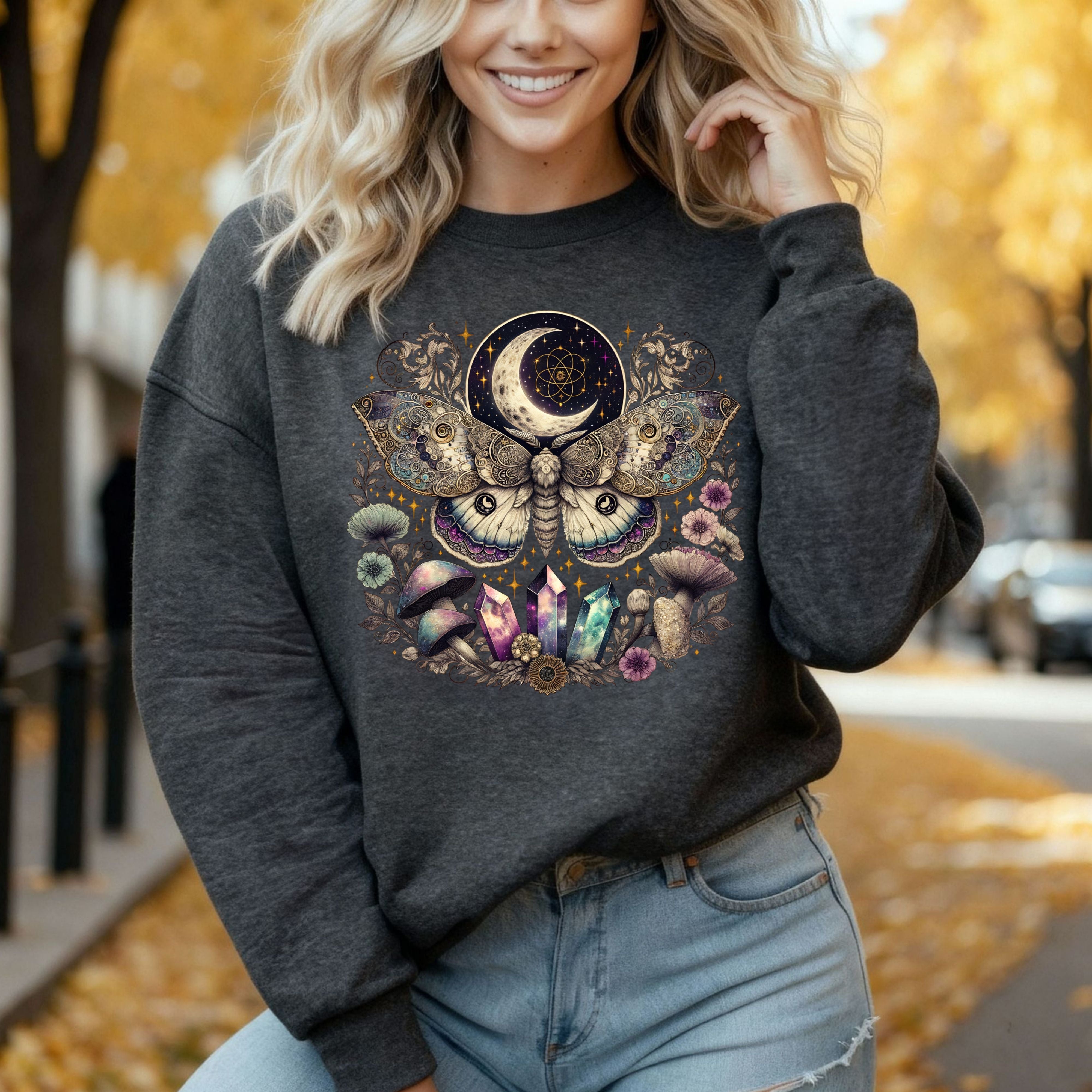 Float through your days in celestial style with our Celestial Moth Crew Sweatshirt. Featuring a playful moth design, this sweatshirt will add a touch of whimsy to any outfit. Embrace your inner free spirit and let this cozy sweatshirt take your wardrobe to new altitudes!
